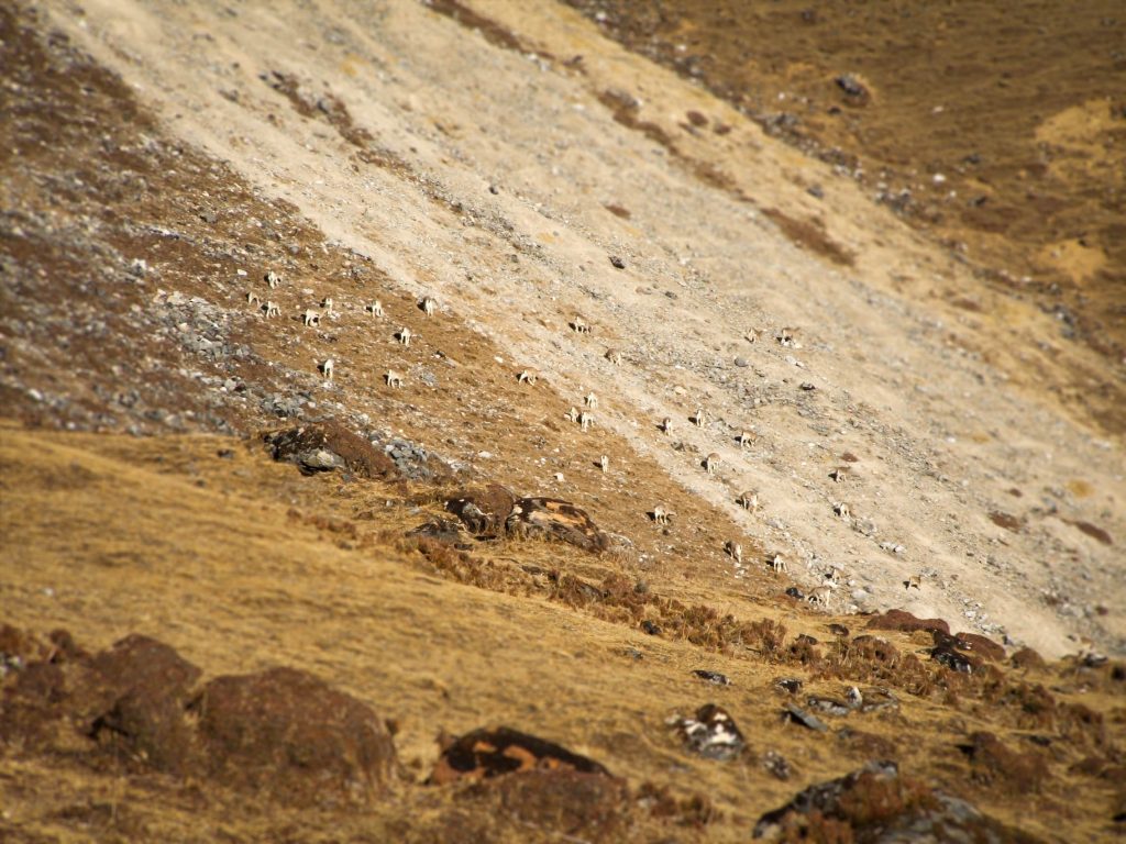 Following the left side of the lakes, the steep climb continues, taking the trekker up to the top of the ridge. Ruddy Shelducks and Common Mergansers are sure to be sighted swimming and wading along the shores of the lakes in which huge trouts are said to be abundant. This is also the territory of Blue Sheep with massive horns who graze in large groups of 70 or more. Many sightings of the elusive Snow Leopard have been reported from this area.